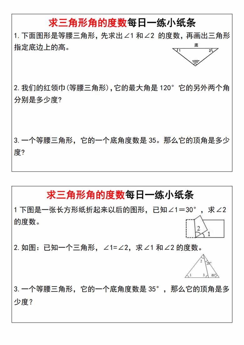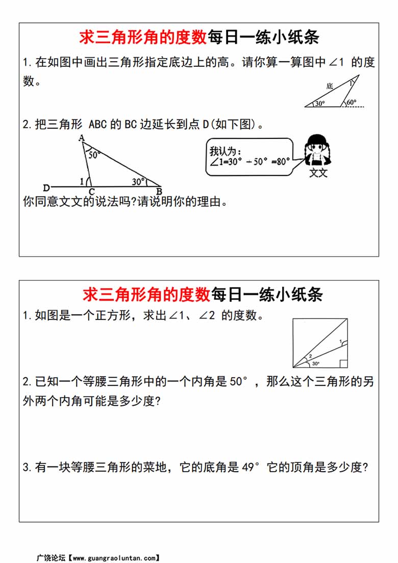 求三角形角的度数每日一练小纸条,带答案解析11页PDF电 ...