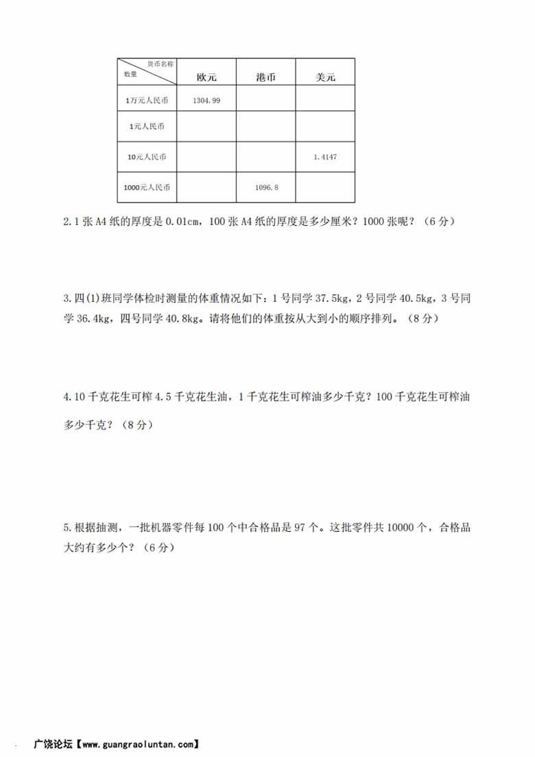 小数比较大小、小数点移动专项,8页PDF电子版学习资料 ...